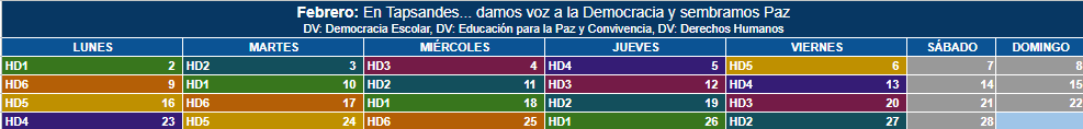 Cada mes te comunicaremos el planeador y cronograma por medio de los Tapsandes News
